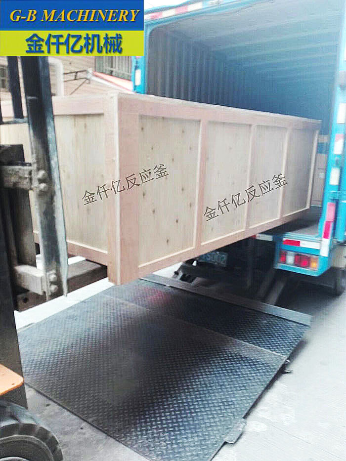 金仟億不銹鋼帶冷凝器反應(yīng)釜裝箱送往港口,發(fā)往新加坡。
