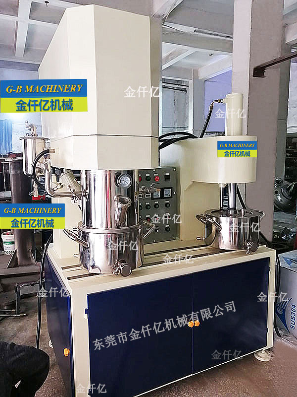 本機由機架、行星架、封蓋、攪拌器、刮壁器、電機、料桶、軸承座、分散軸、齒輪箱、分散輪、油缸、控制柜、液壓站、真空系統(tǒng)、壓料系統(tǒng)組成,為壓料攪拌一體化的多功能設(shè)備。機架采用液壓升降,平穩(wěn)可靠。